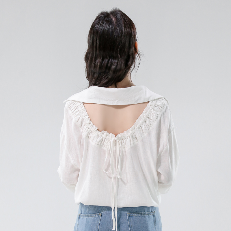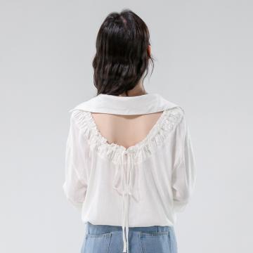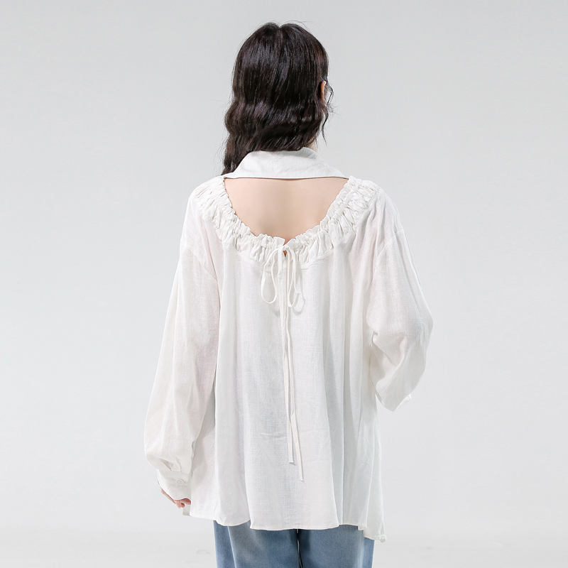 FA43341# 早秋新款慵懒风百搭长袖衬衫设计感露背抽绳宽松上衣 服裝批發女裝批發服飾貨源