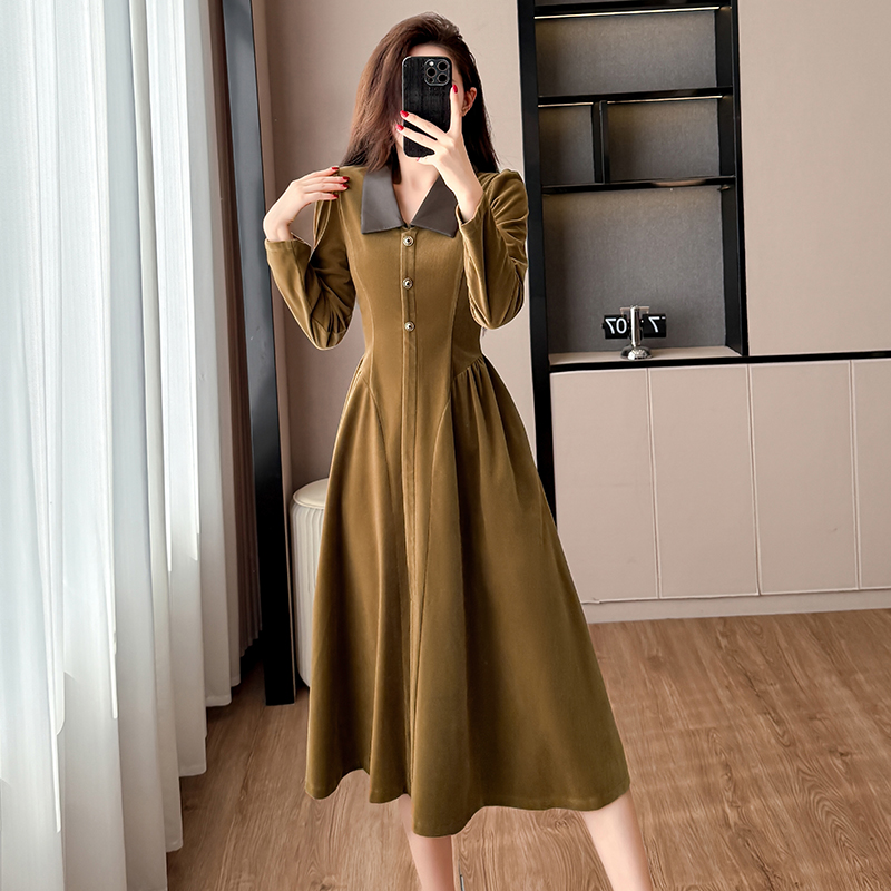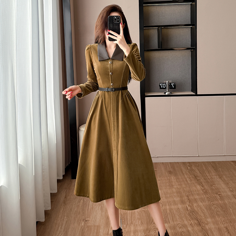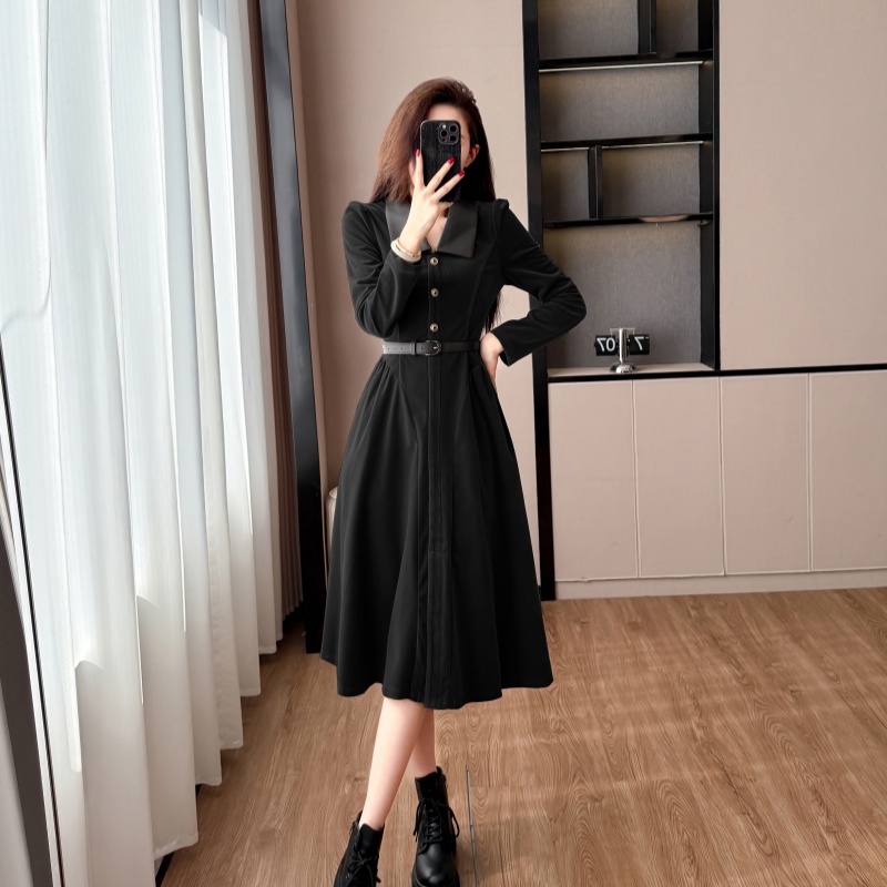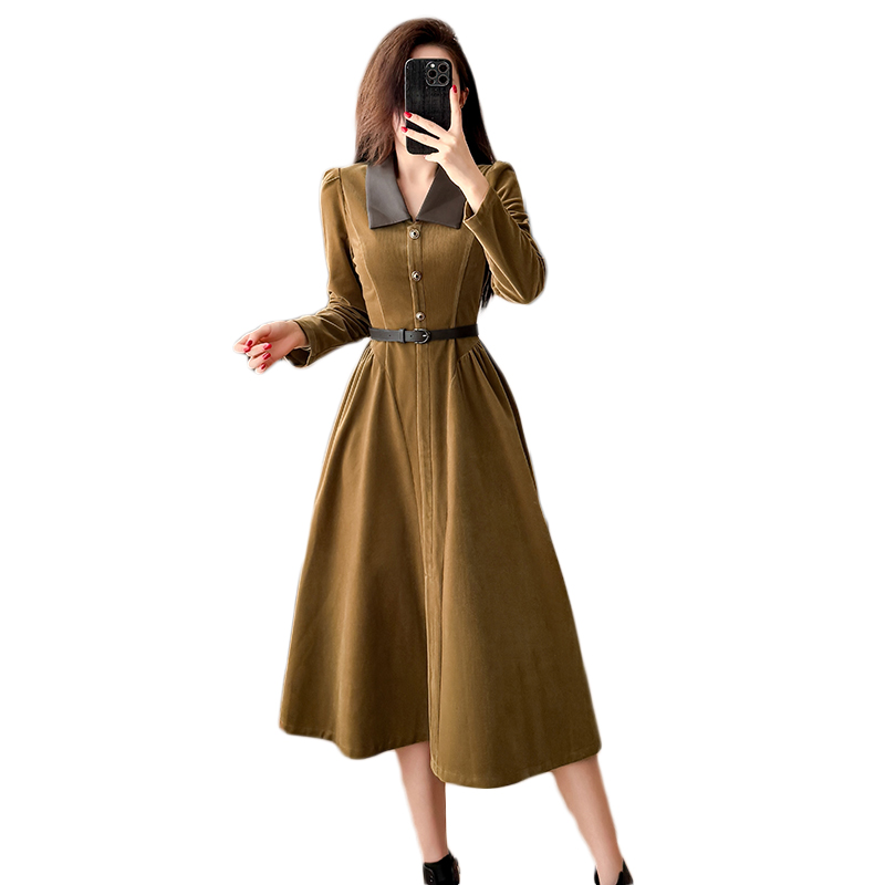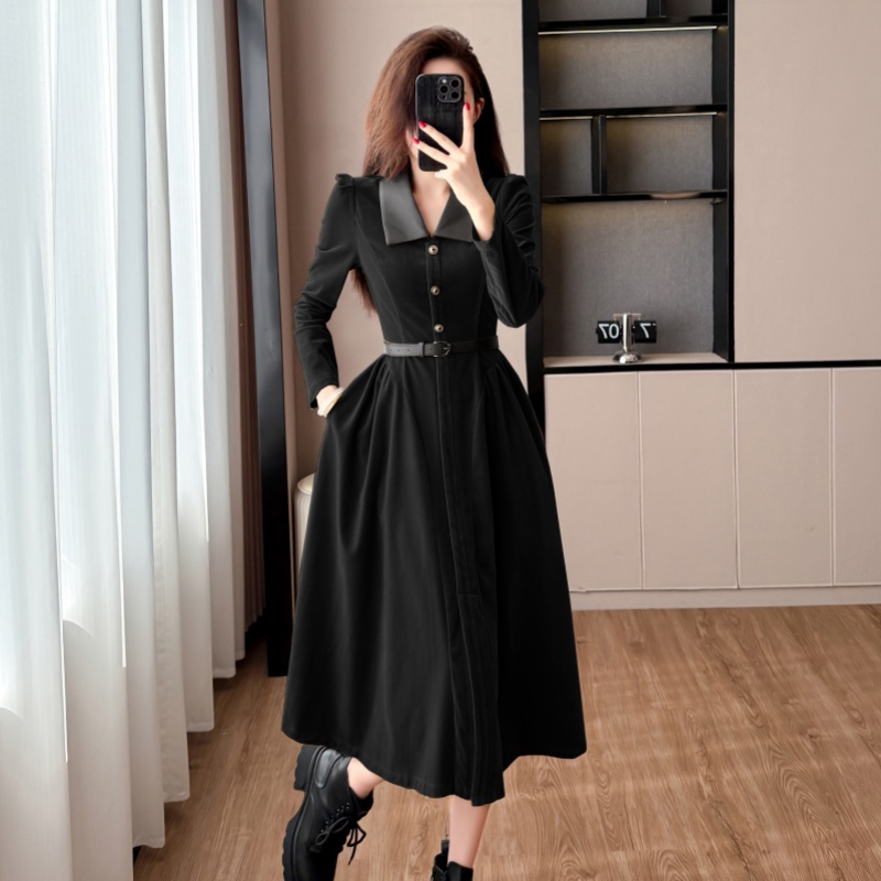 FA43409# 秋冬新款法式绝美气质复古翻领时尚气质显瘦设计师连衣裙 服裝批發女裝批發服飾貨源
