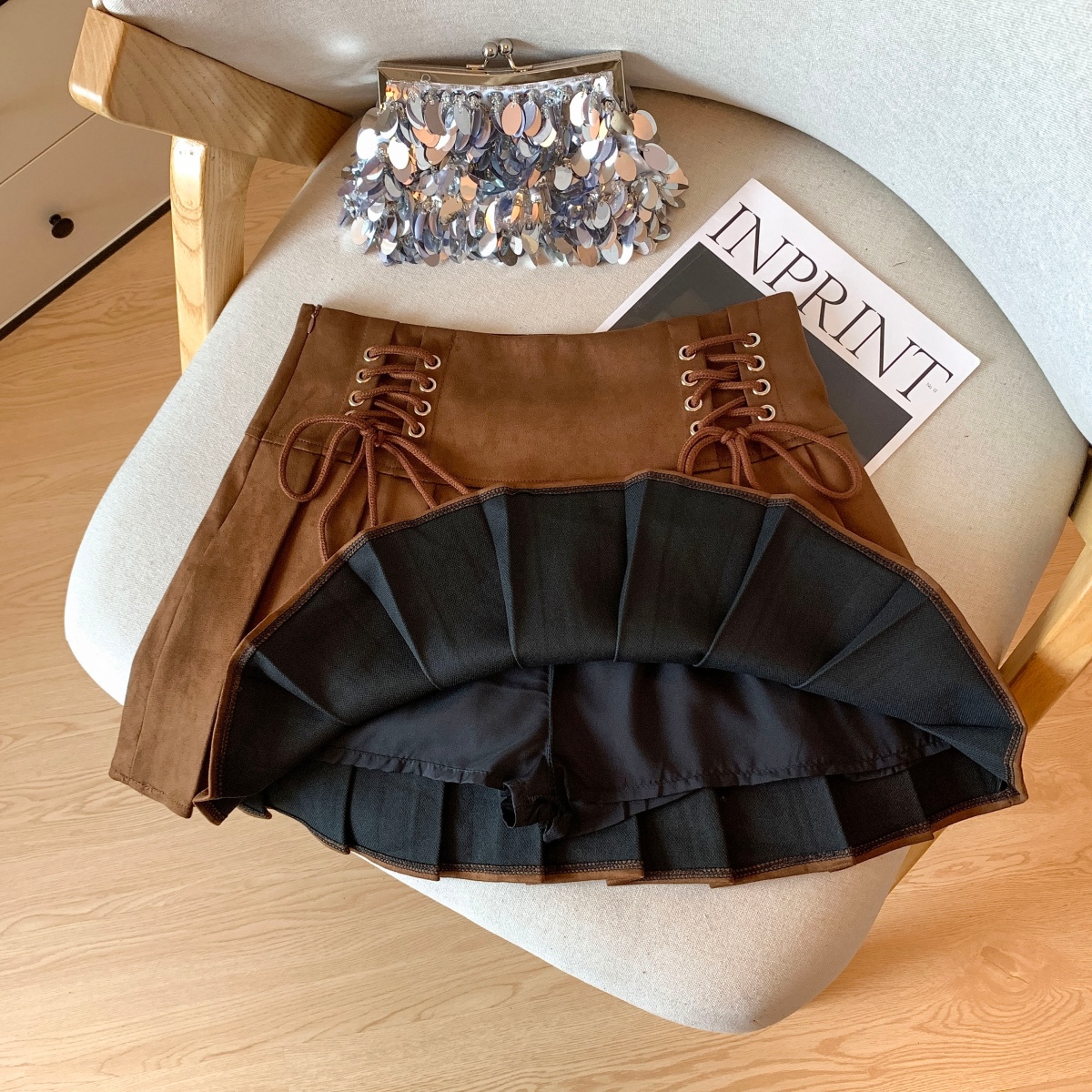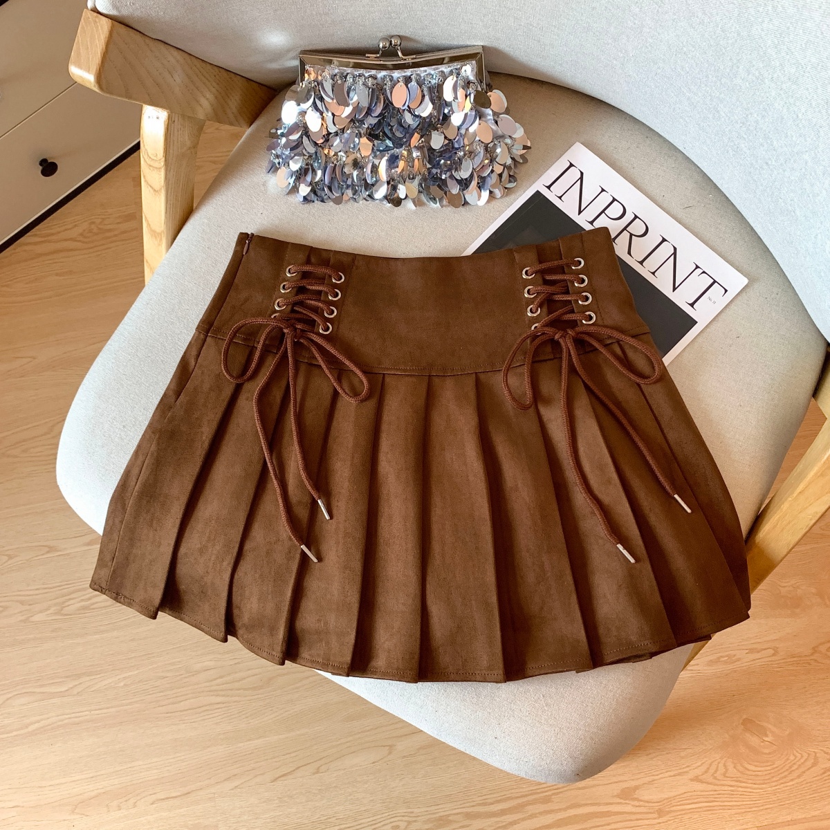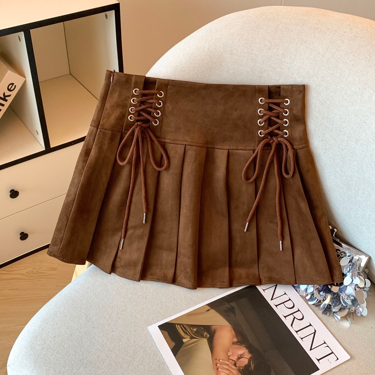 FA43755# 秋冬高腰百褶包臀短裙女美拉德学生辣妹绑绳系带a字半裙 服裝批發女裝批發服飾貨源