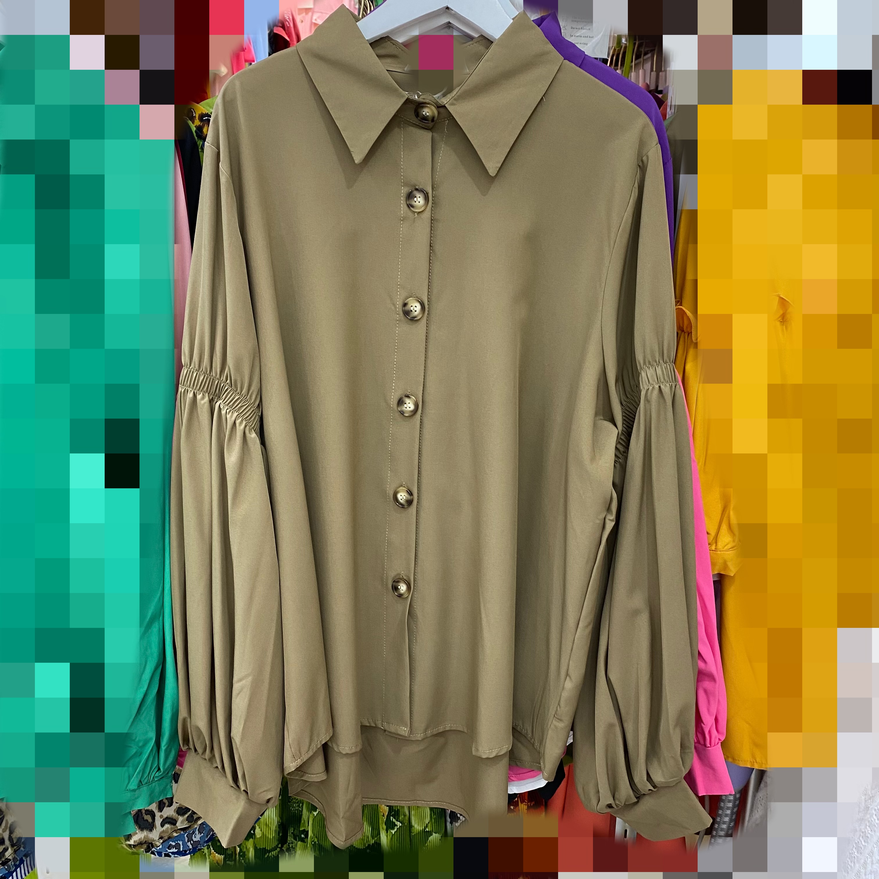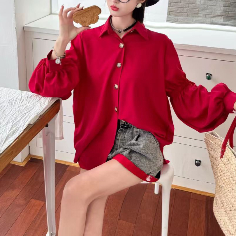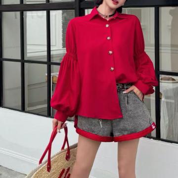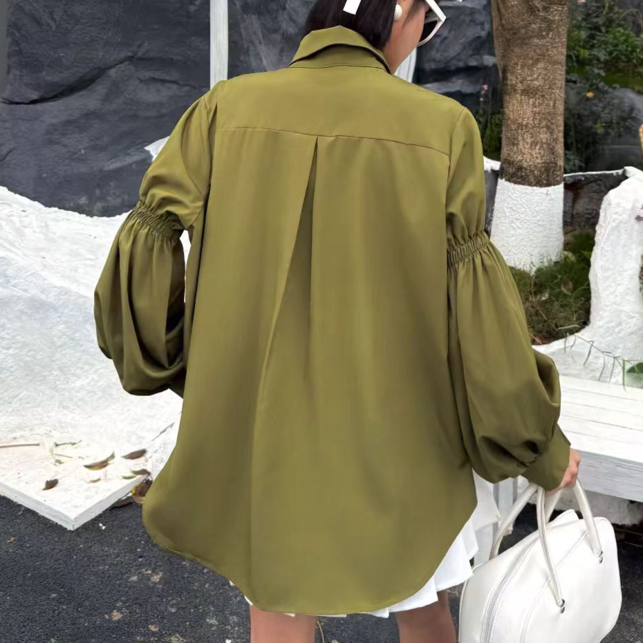 港风复古灯笼袖衬衫新款春秋长袖衬衣法式别致洋气上衣 服裝批發女裝批發服飾貨源