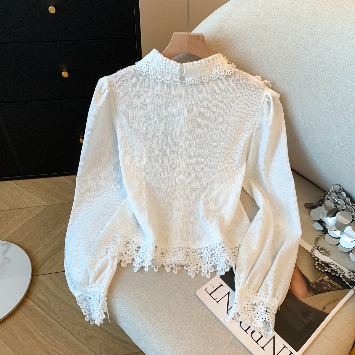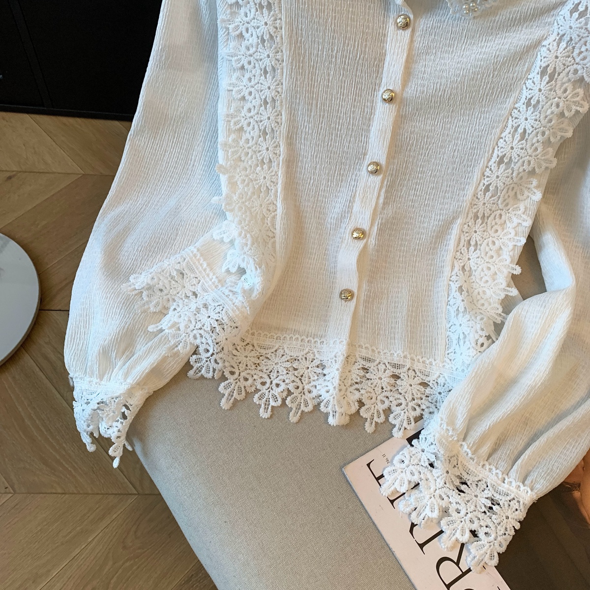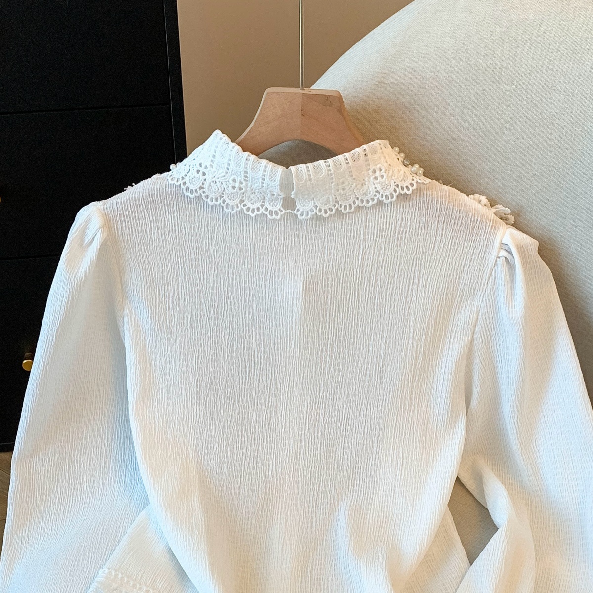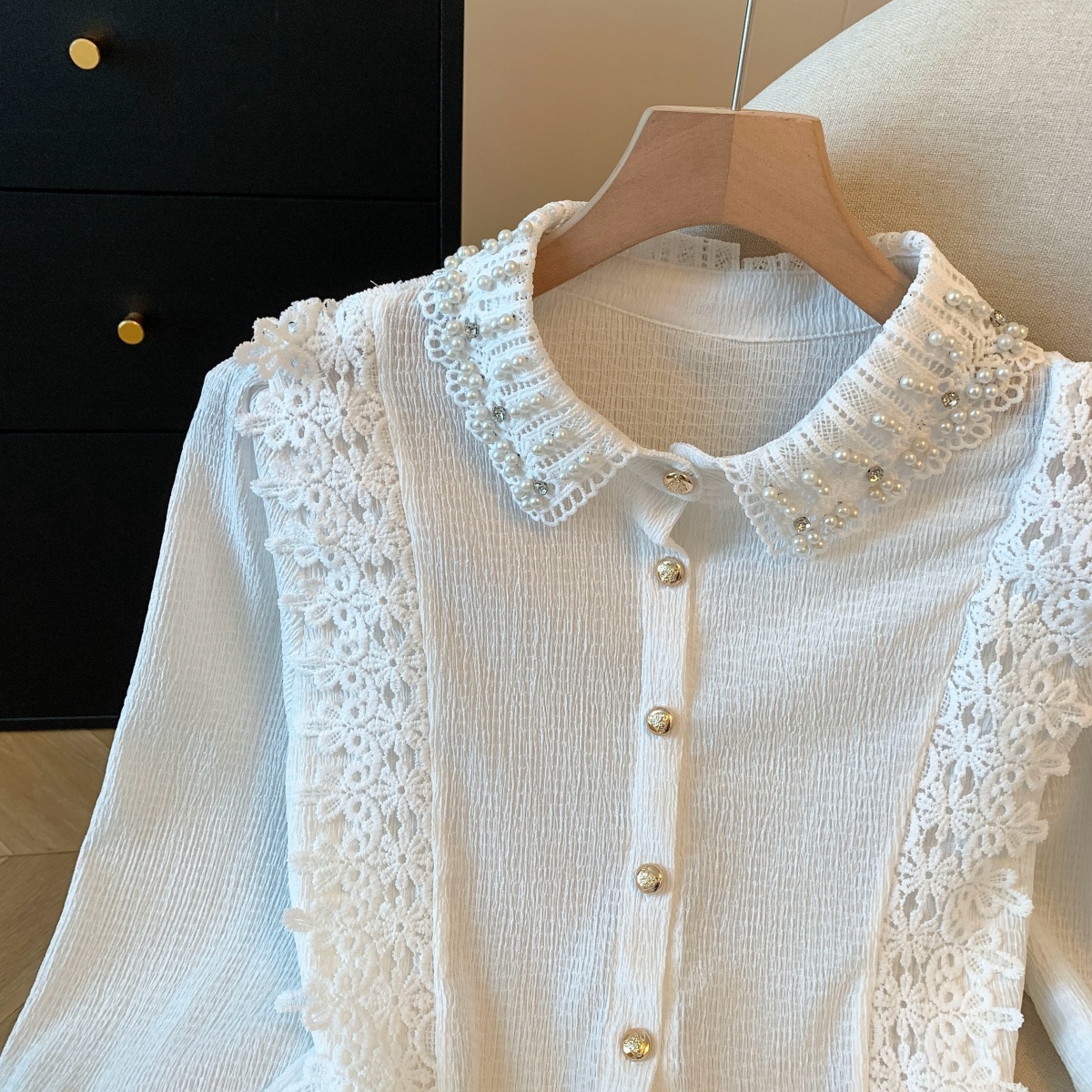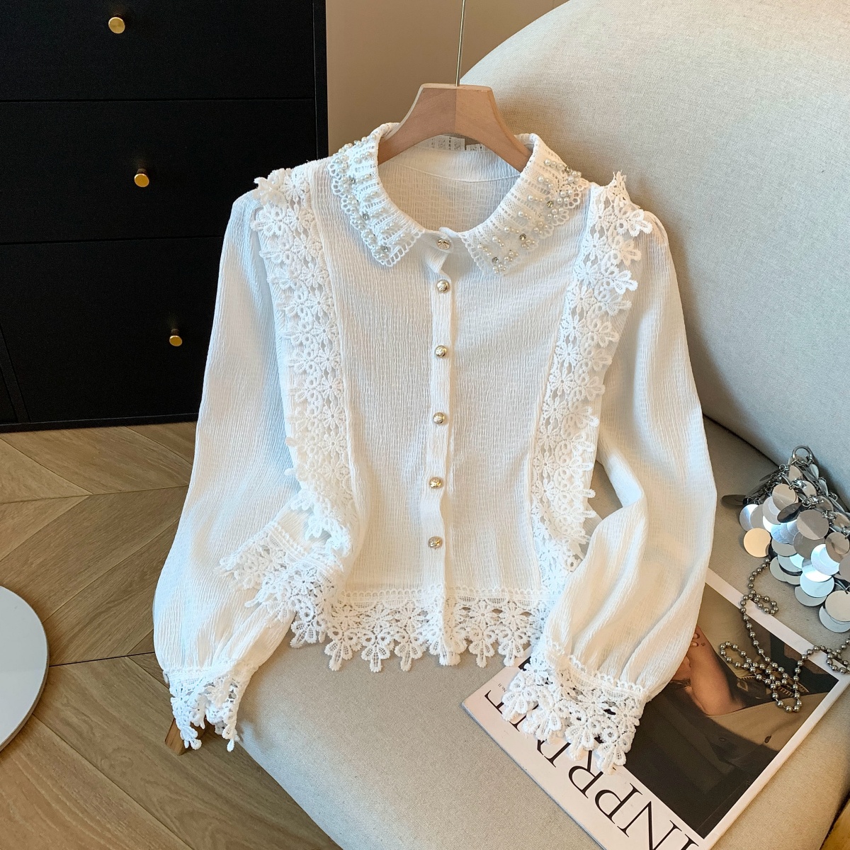 小香风重工钉珠蕾丝衬衫女早秋别致漂亮小衫气质甜美长袖上衣 服裝批發女裝批發服飾貨源