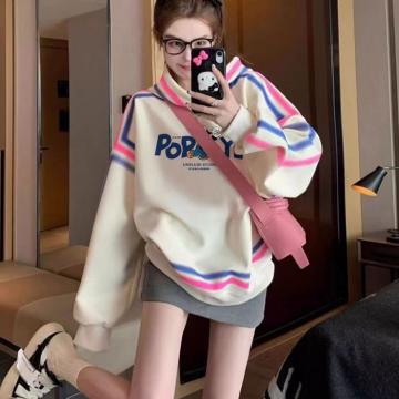 FA47044# 仿华棉复合银狐绒后包领全件压线爆款加绒连帽卫衣女 服裝批發女裝批發服飾貨源