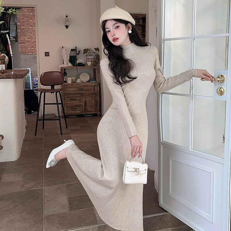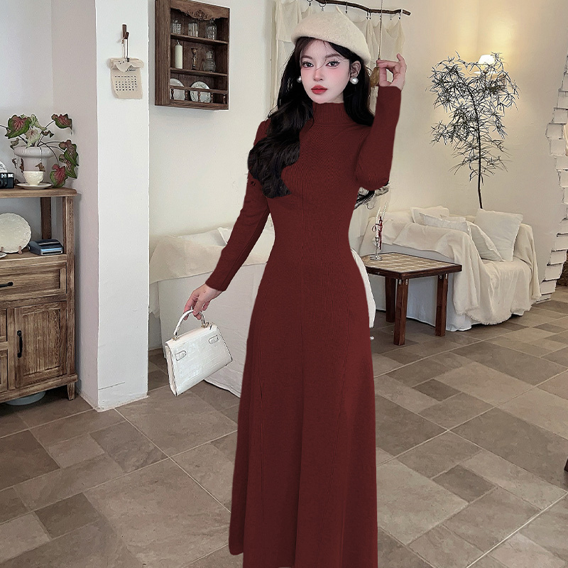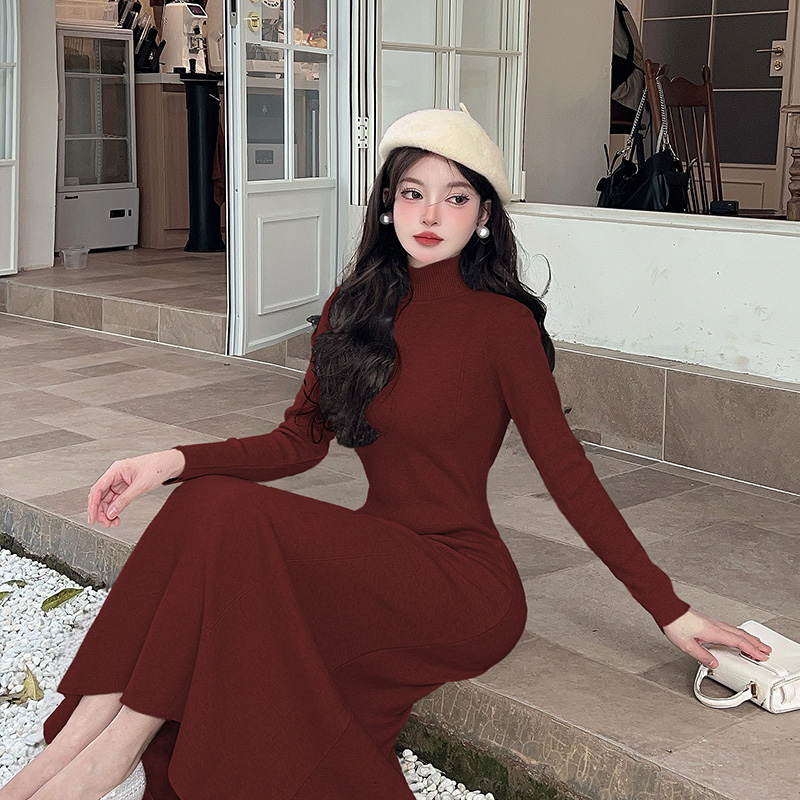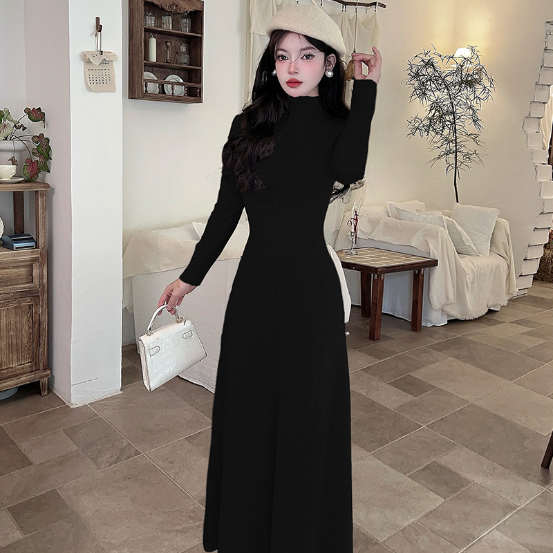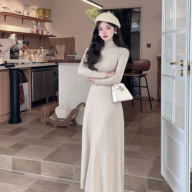 FA49098# 法式气质长袖针织连衣裙新款秋冬高级感修身内搭中高领 服裝批發女裝批發服飾貨源