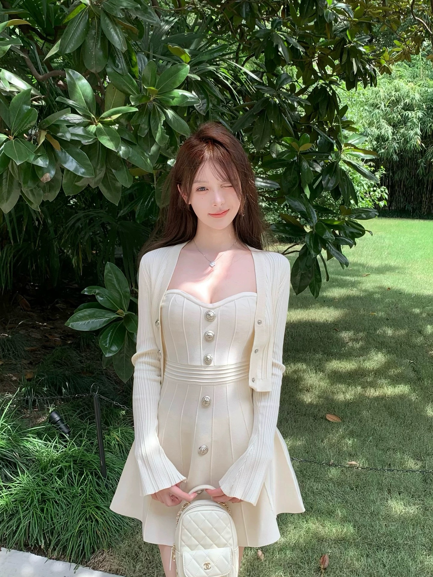 FA49102# 小香风抹胸连衣裙套装女秋冬高级感江浙沪名媛千金穿搭 服裝批發女裝批發服飾貨源