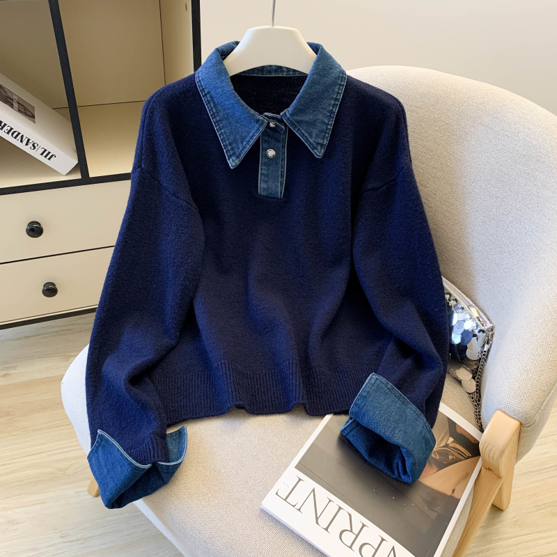 首页 > 毛衣、针织衫 > FA49205# 假两件设计感小众加厚牛仔领polo撞色毛衣女针织衫宽松上衣 服裝批發女裝批發服飾貨源