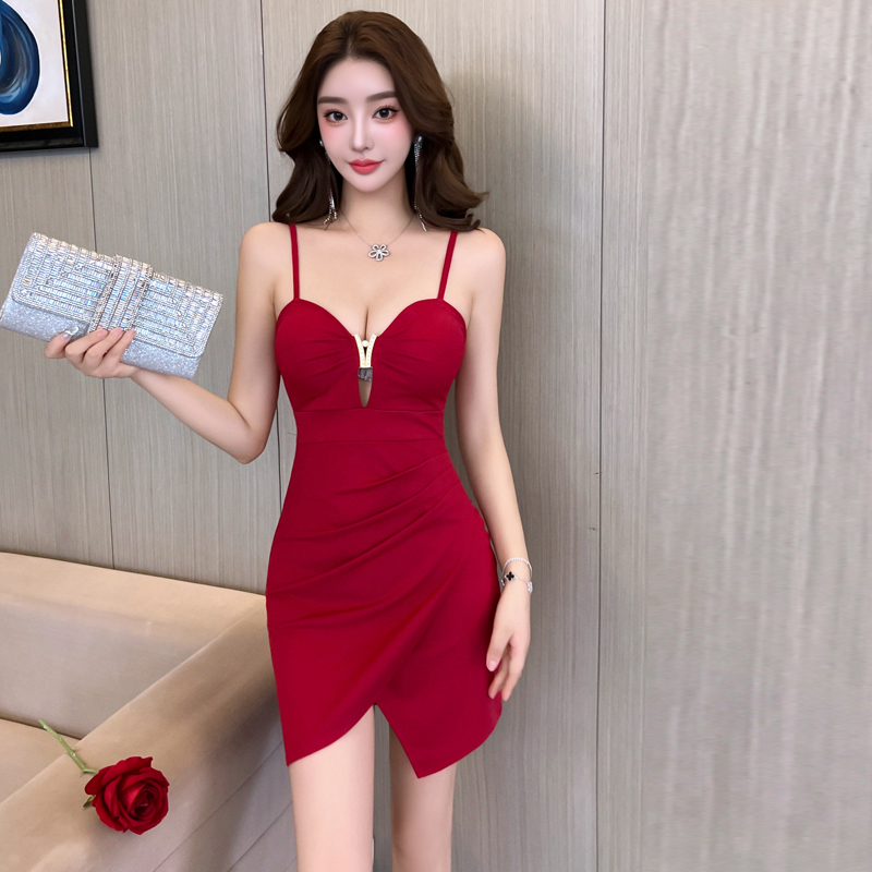 FA49297# 款吊带深v礼服遮肚显瘦夜场包臀裙性感连衣裙
