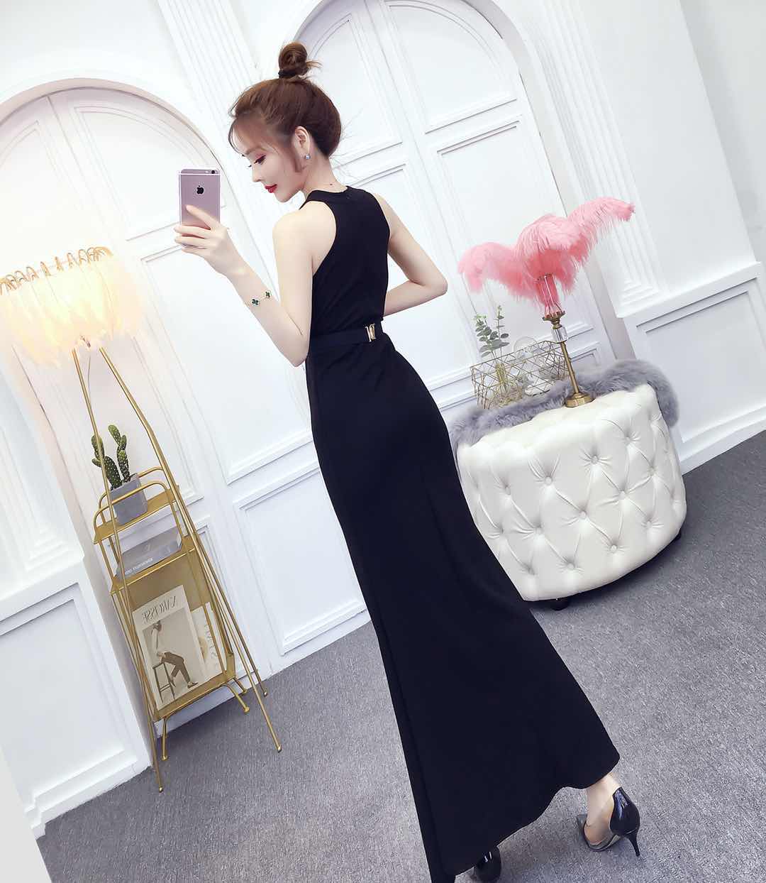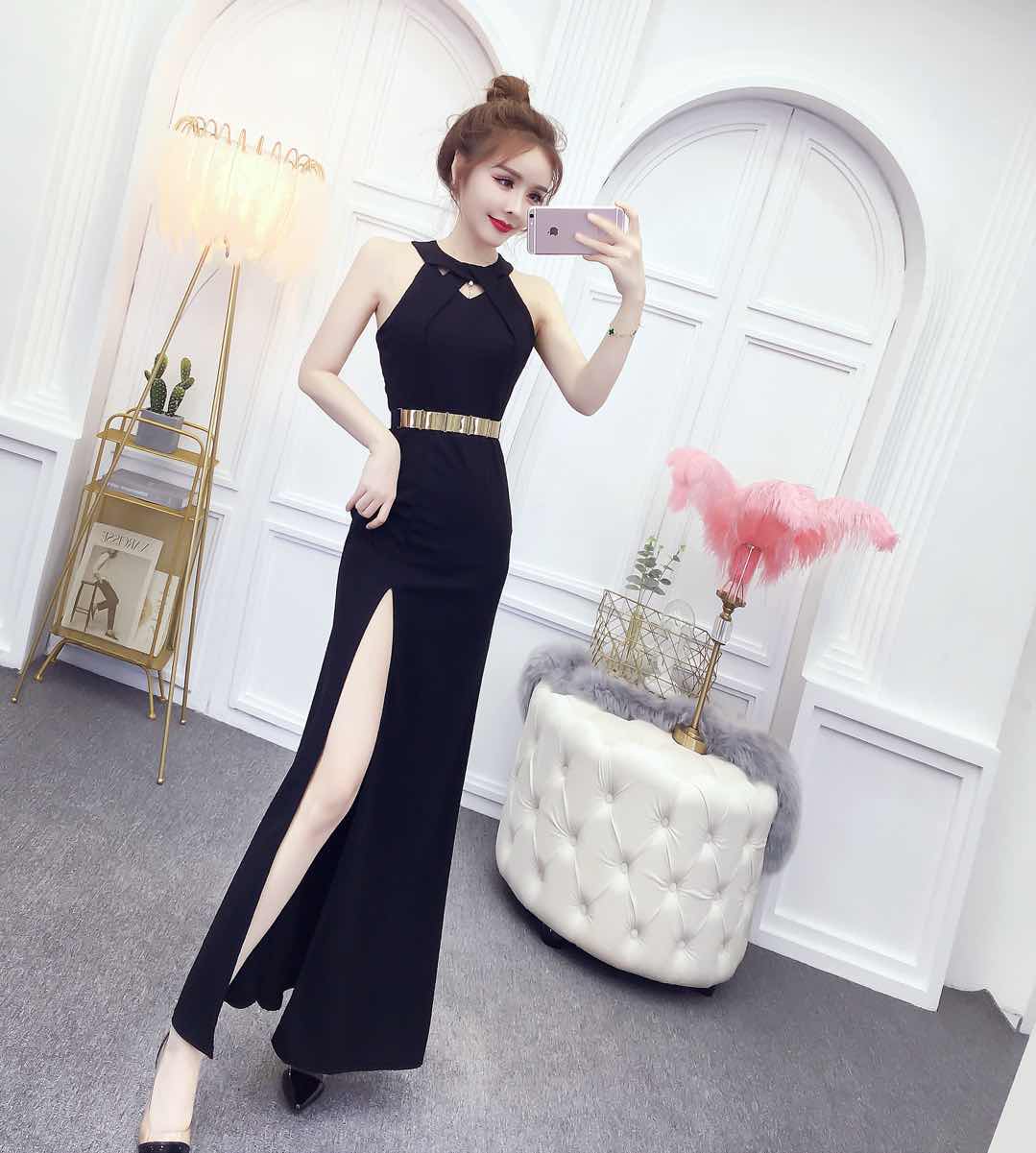 新款晚礼服女宴会高贵优雅黑色挂脖长款性感生日派对小礼服裙