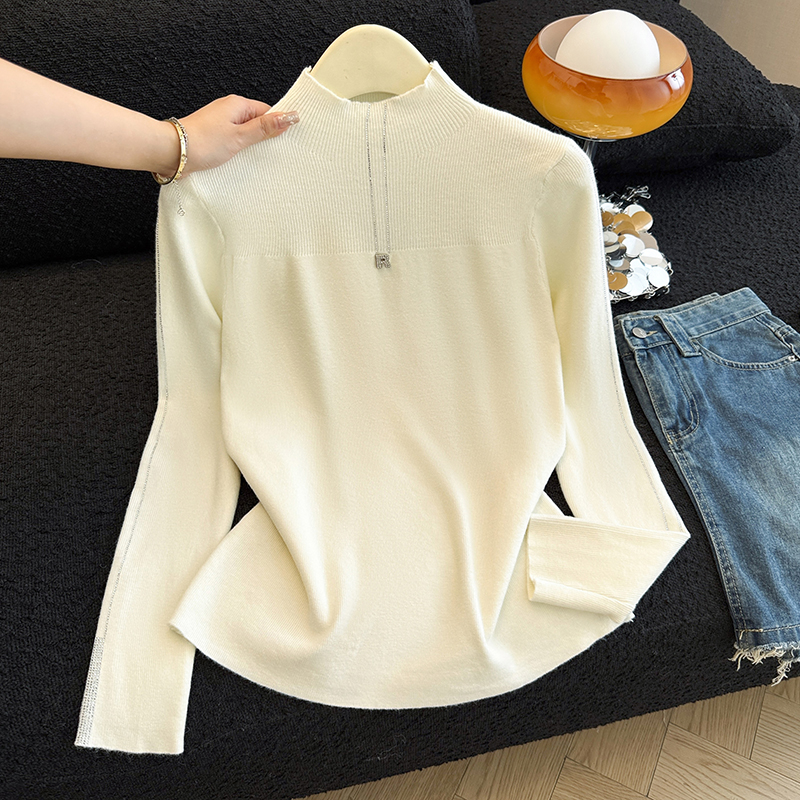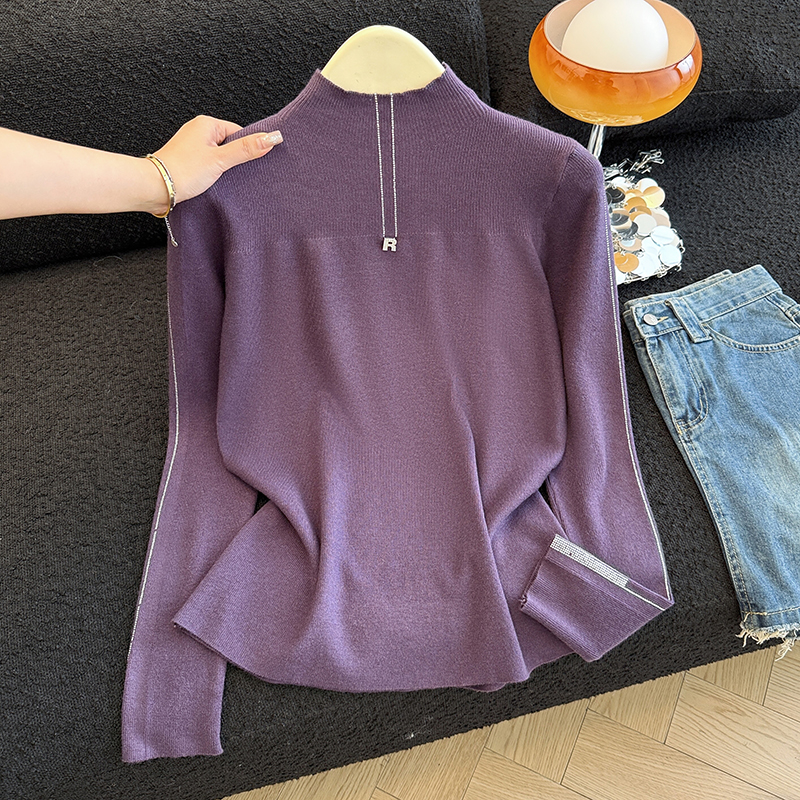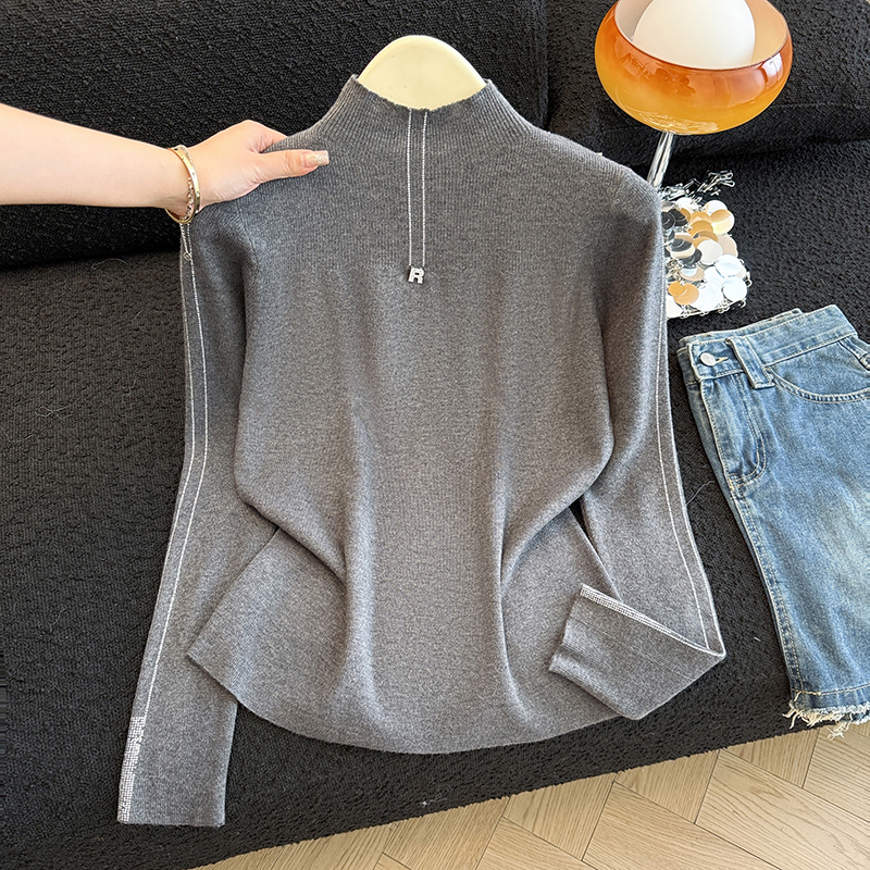 FA49561# 秋冬新款时尚洋气烫钻半高领长袖针织衫女百搭打底毛衣减龄上衣潮