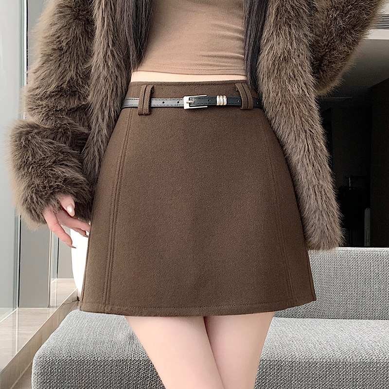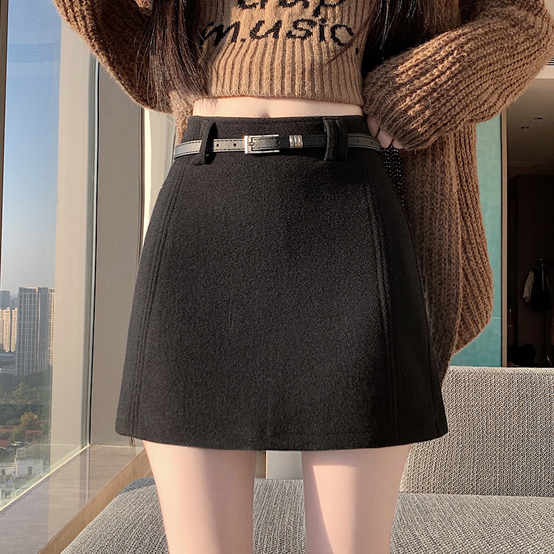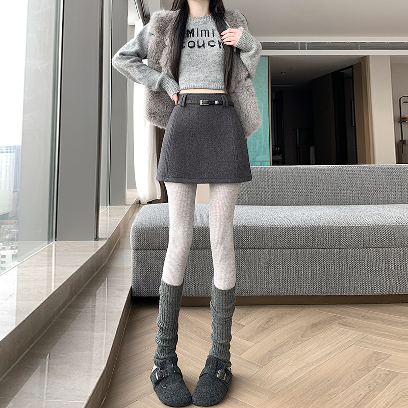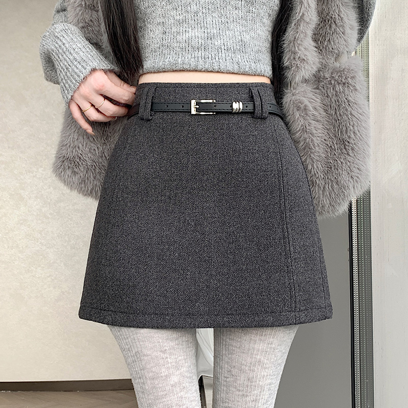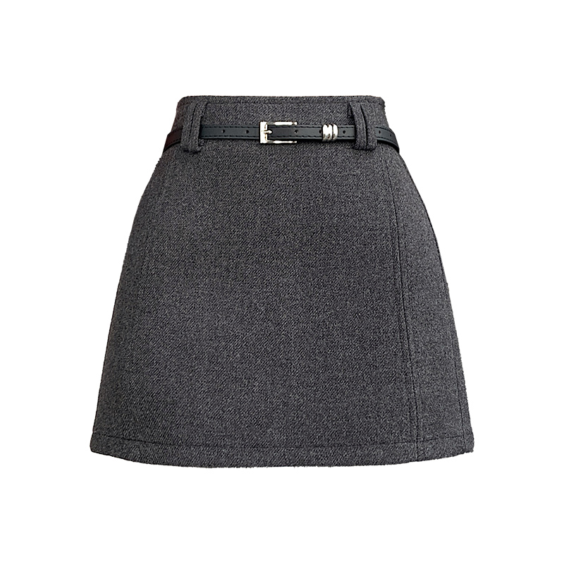FA49649# 秋冬毛呢半身裙短款A字裙高腰直筒短裙修身显瘦高级灰色呢子
