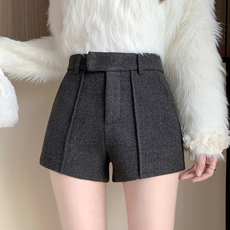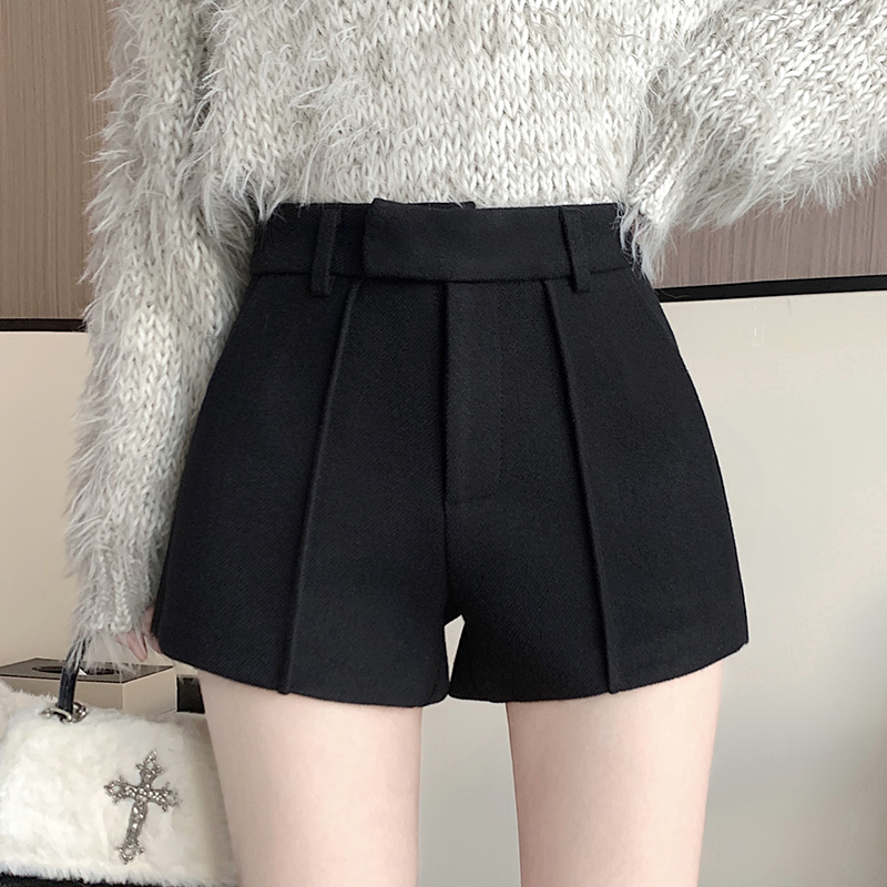 FA49653# 高级感辣妹a字靴裤女秋冬新款加厚毛呢高腰百搭显腿热裤短裤