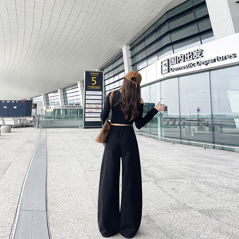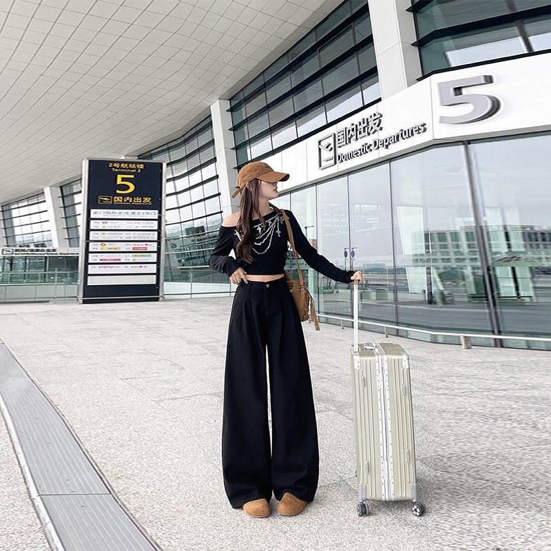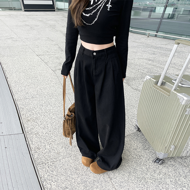 FA49754# -美式复古阔腿牛仔裤女纯色百搭宽松韩系高腰牛仔裤子 服裝批發女裝批發服飾貨源