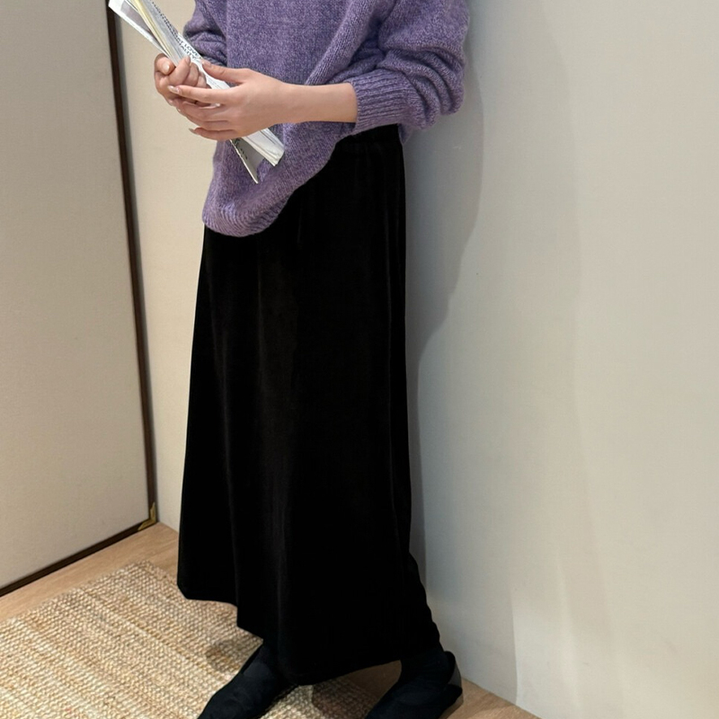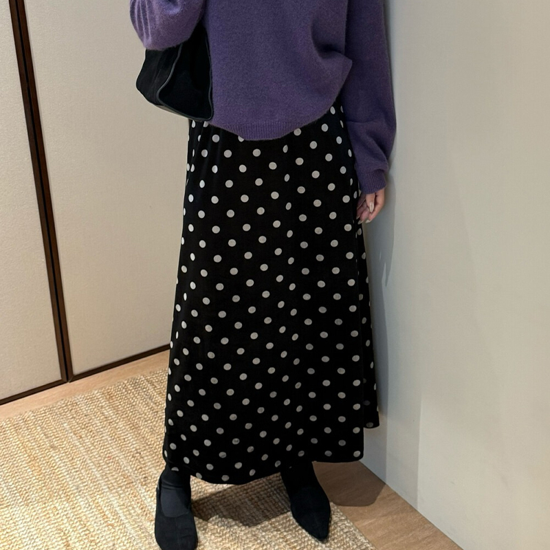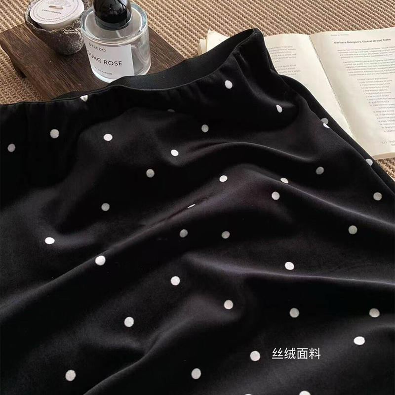 FA49881# 黑色加绒金丝绒波点半身裙秋冬新款时尚加绒伞裙A字长裙 服裝批發女裝批發服飾貨源