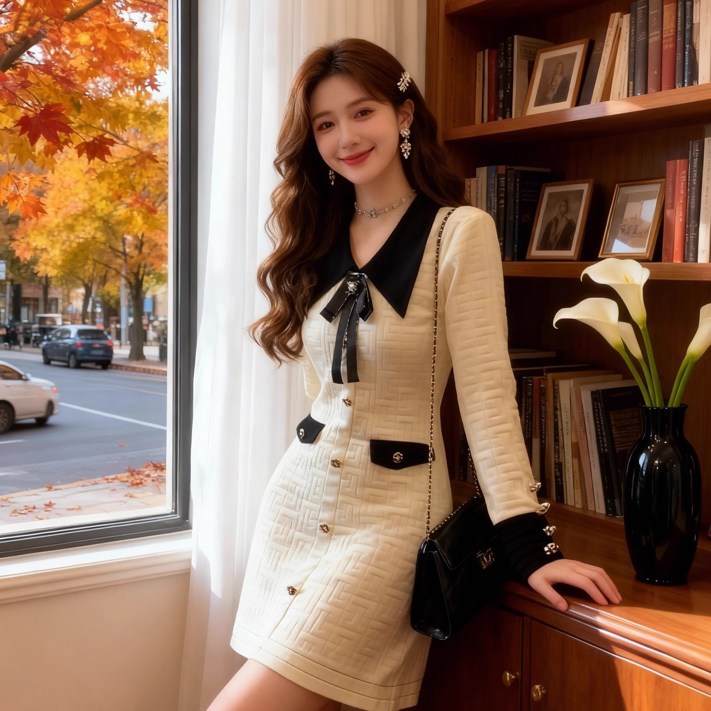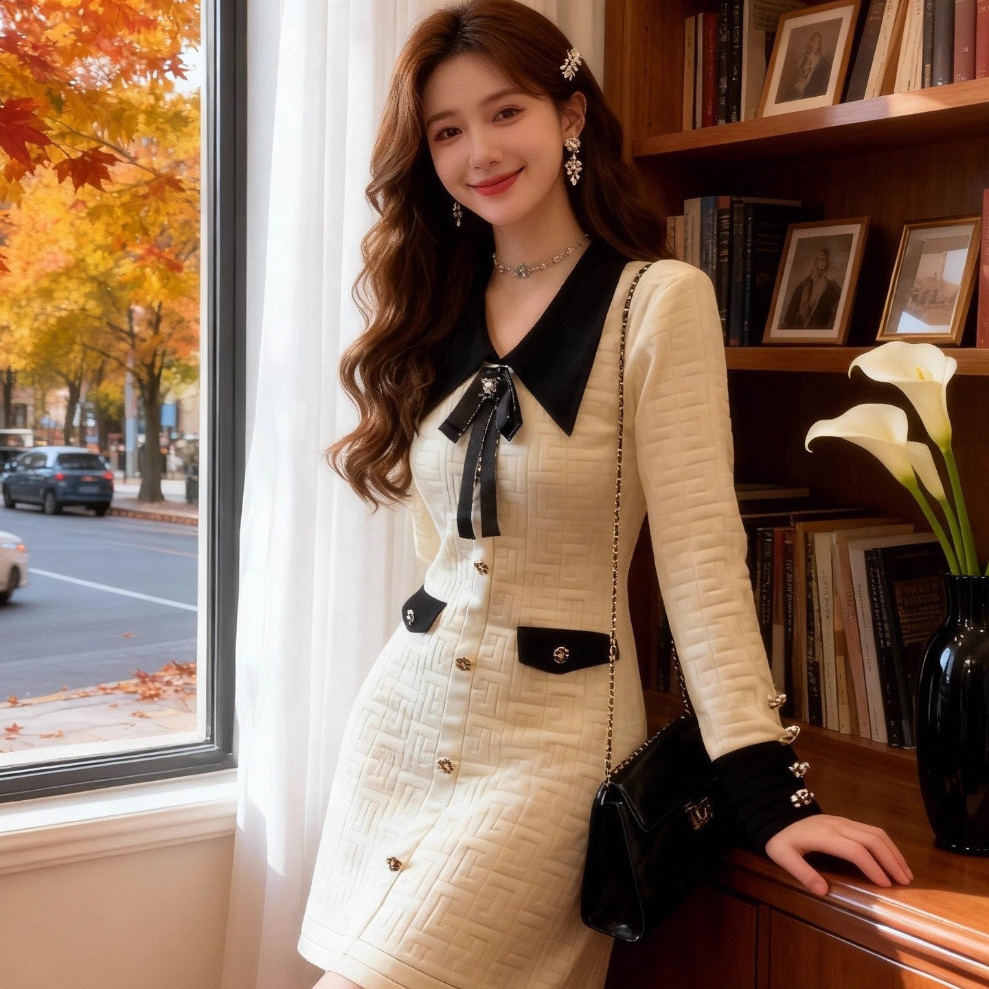 FA50370# 名媛范气质慵懒风修身连衣裙女秋冬时尚蝴蝶结打底针织裙子女 服裝批發女裝批發服飾貨源