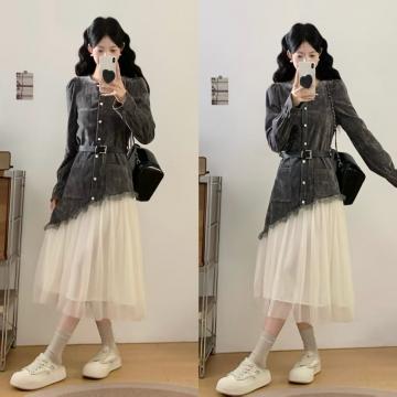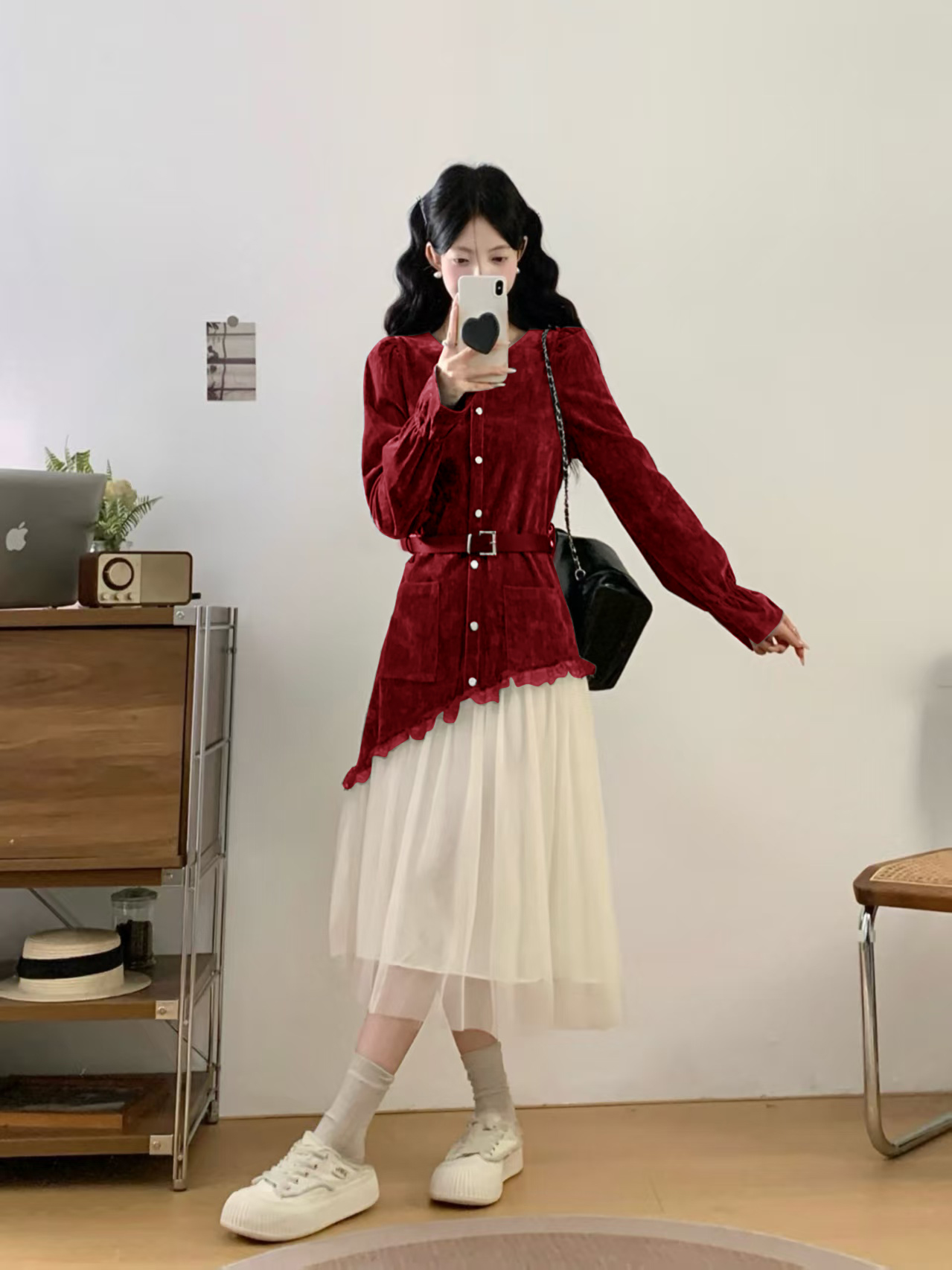FA52622# ~小香风丝绒连衣裙女新款女装高端名媛法式气质收腰长裙子 服裝批發女裝批發服飾貨源