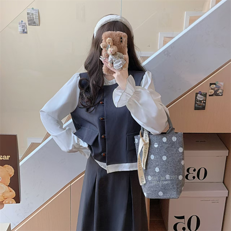 大码女装秋季新款韩版复古气质套装设计感撞色上衣+半裙 服裝批發女裝批發服飾貨源