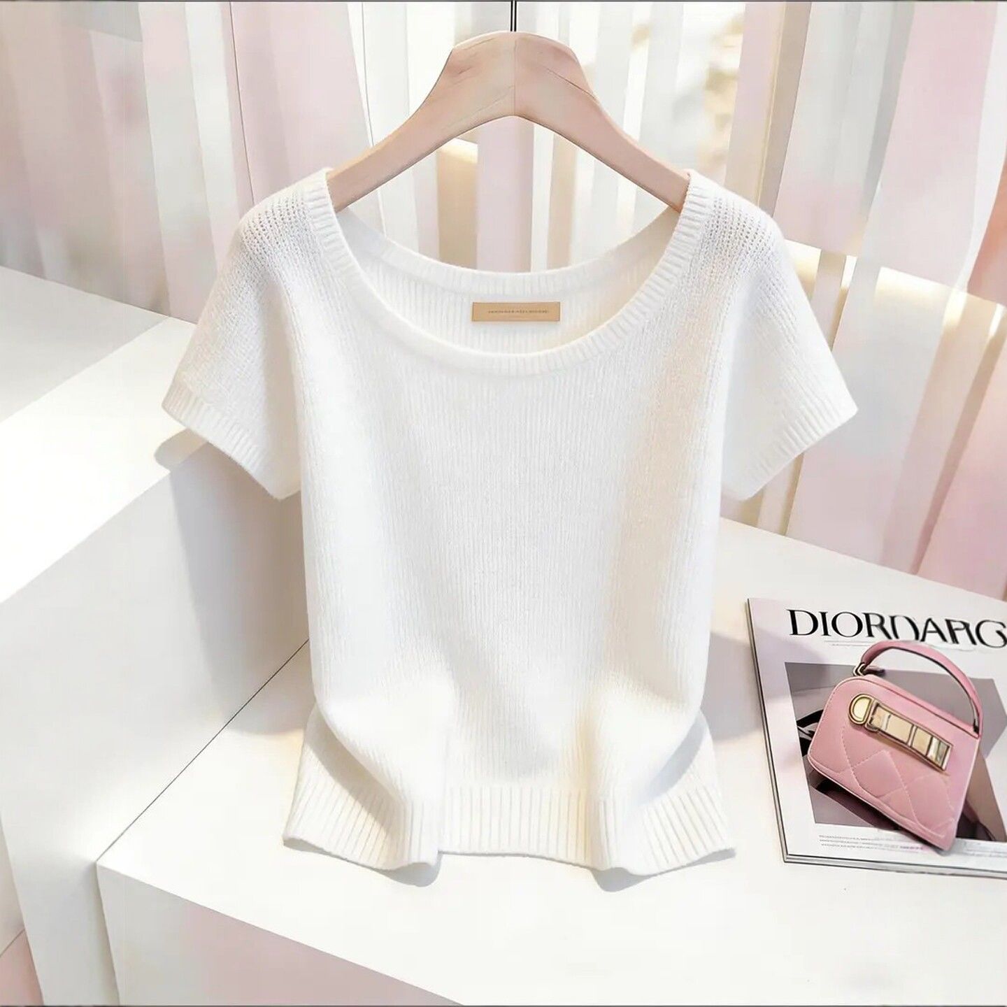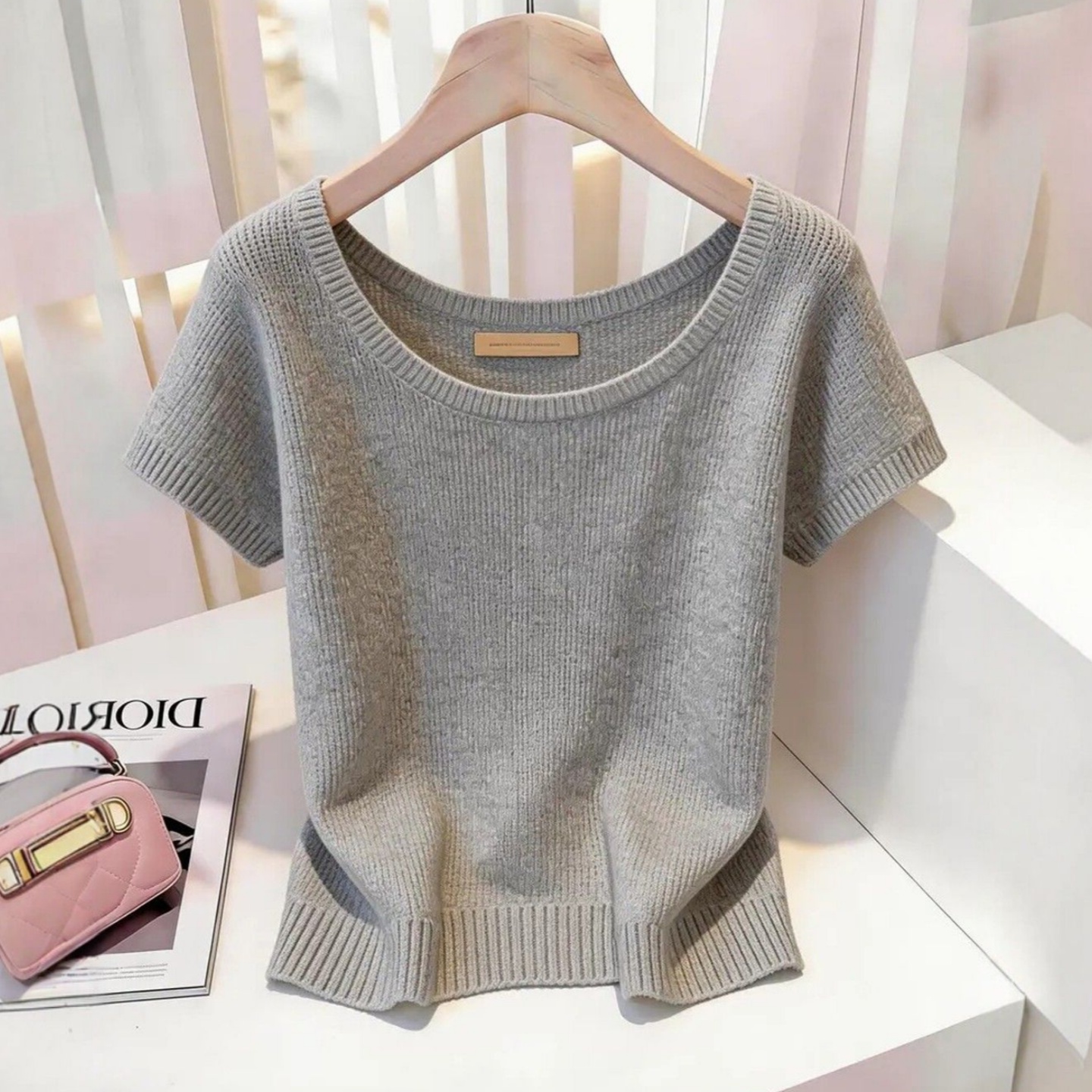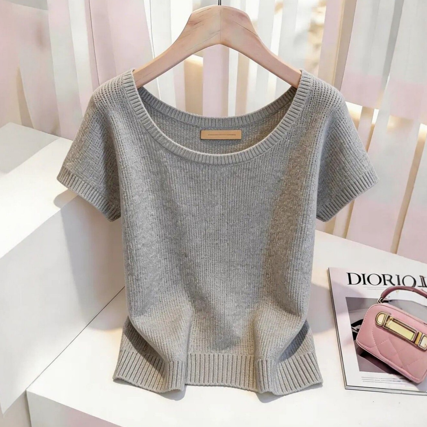 BY14225# 春夏新款女士灰色短袖针织T恤小个子修身显瘦独特漂亮短上衣 服裝批發女裝批發服飾貨源