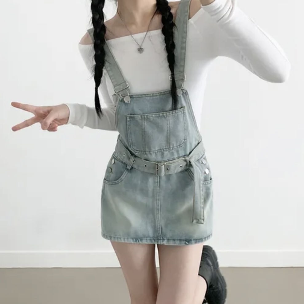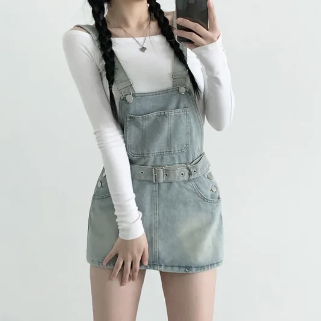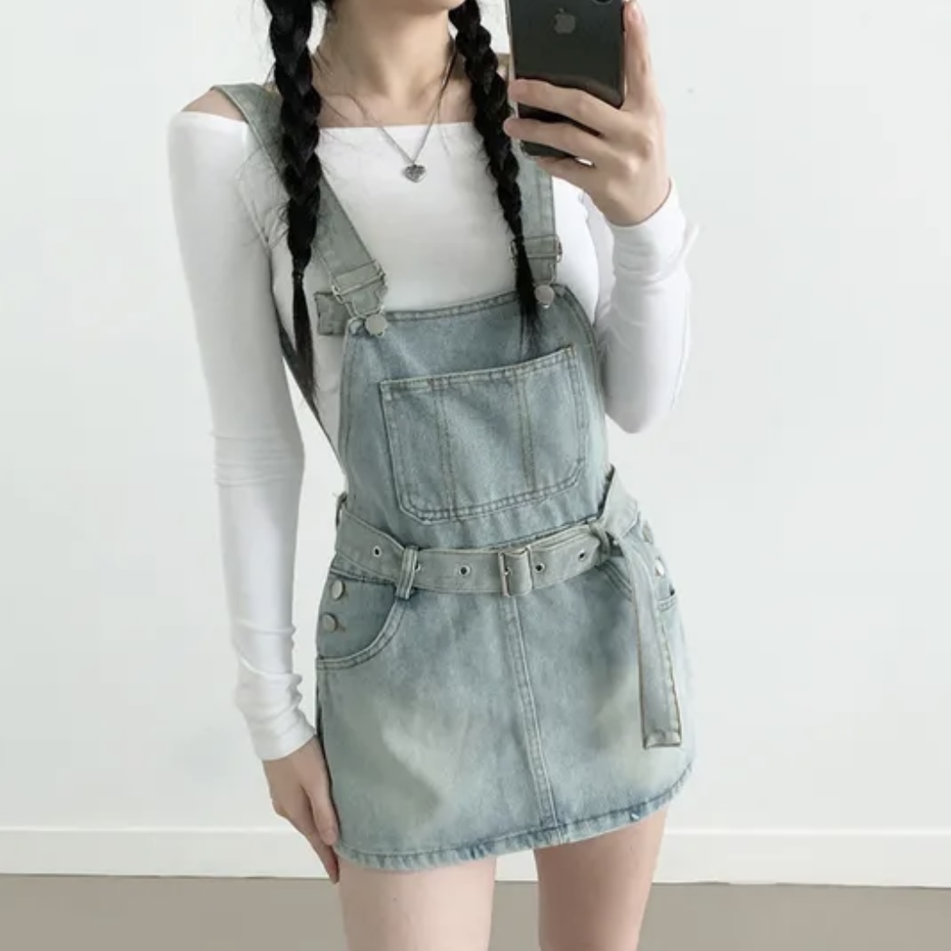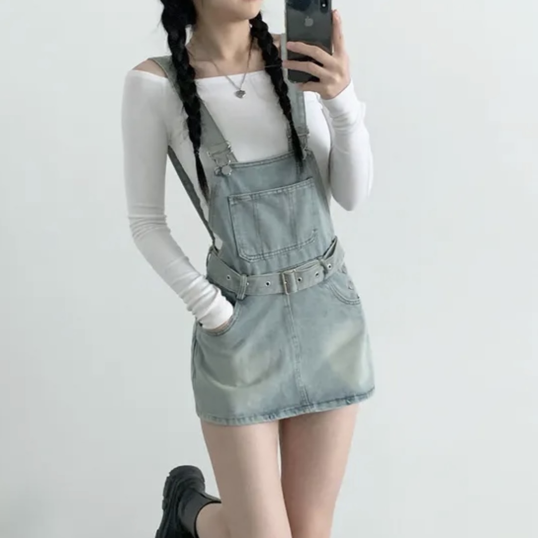 韩国chic复古收腰牛仔背带连衣裙 服裝批發女裝批發服飾貨源