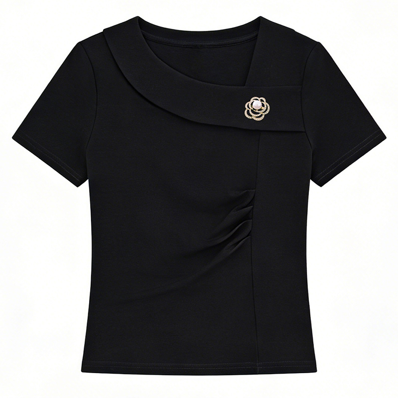 夏季新品时尚海军领纯色短袖T恤休闲百搭装显白显瘦套头小衫 服裝批發女裝批發服飾貨源