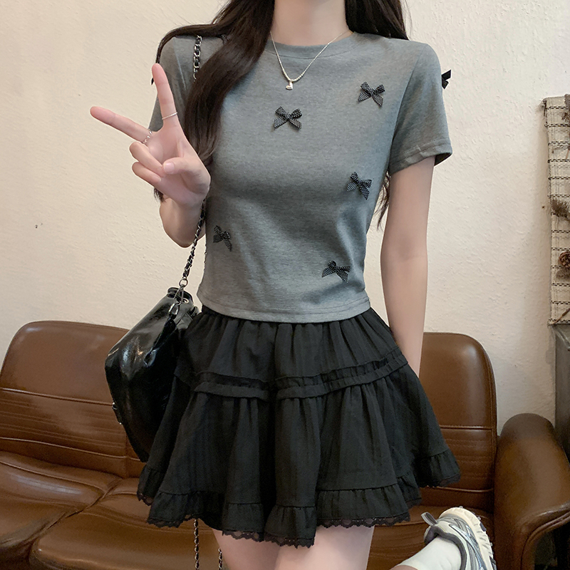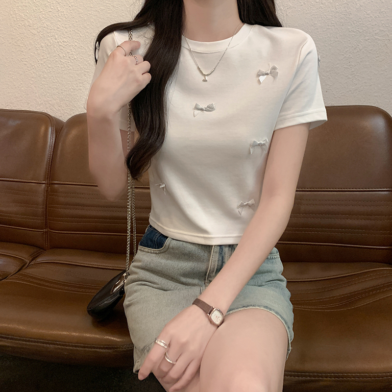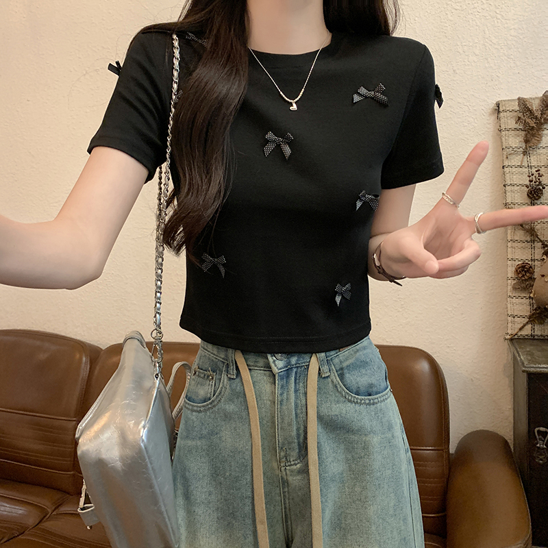 水柔双面短袖t恤夏潮刺绣正肩修身短款圆领上衣女装 服裝批發女裝批發服飾貨源