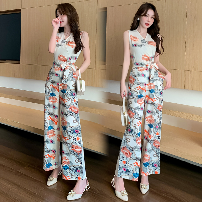 BY17833# 连体裤夏新款印花时尚洋气无袖收腰显瘦垂感阔腿裤 服裝批發女裝批發服飾貨源