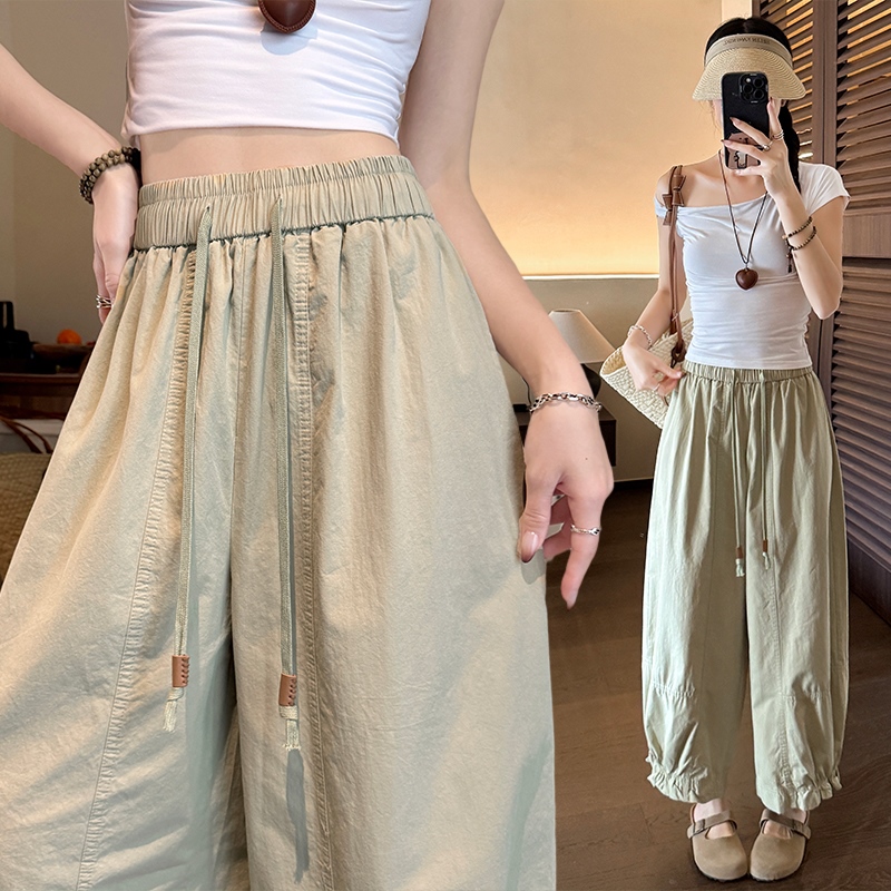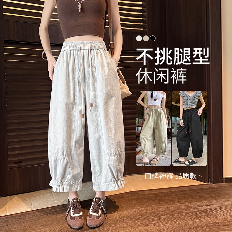 洗水棉灯笼裤女新款设计感高腰九分宽松束脚休闲哈伦裤 服裝批發女裝批發服飾貨源
